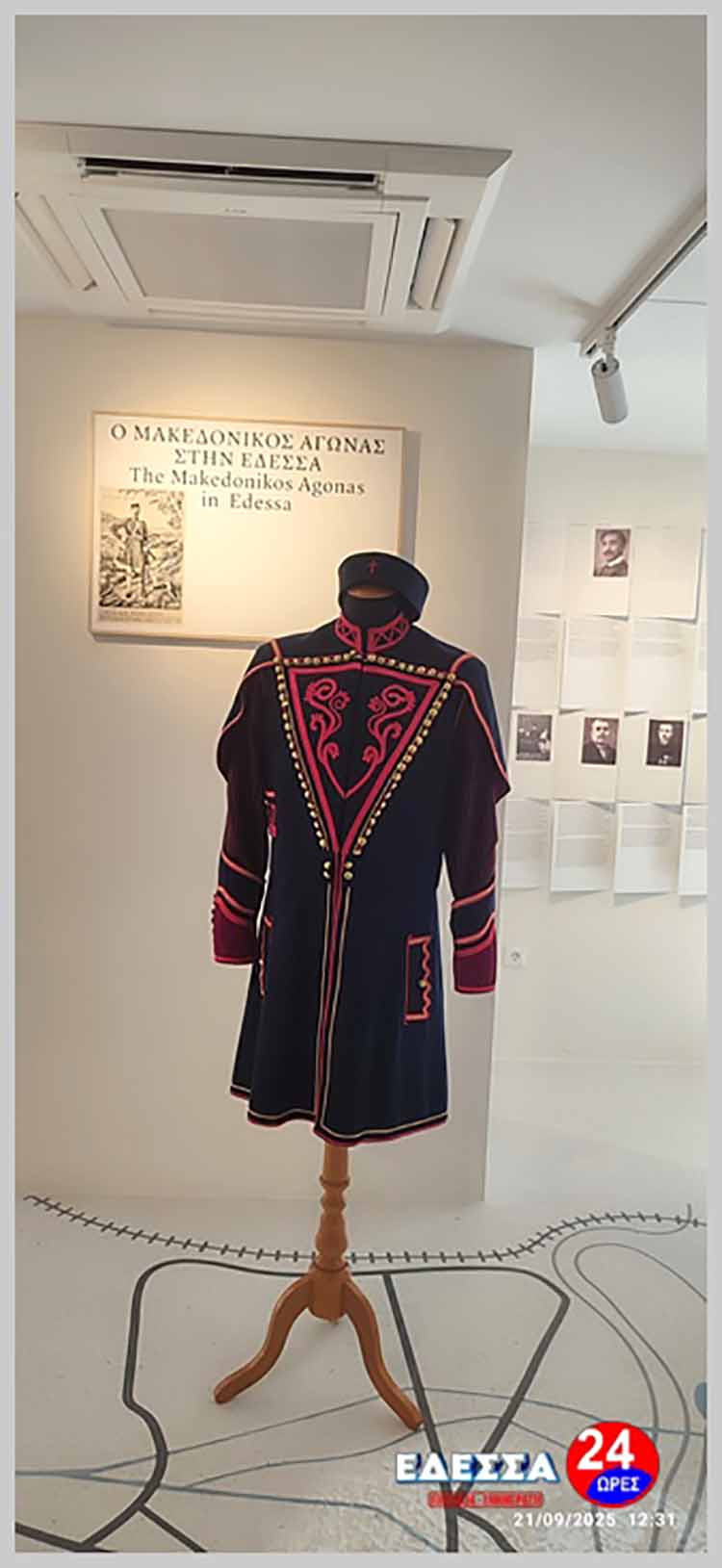 Στην τελετή παρευρέθηκε και ο κ. Χρίστος Γέσιος, ιδρυτής και δωρητής του Μουσείου, ο οποίος με τη γνωστή αγάπη του για την τοπική ιστορία συνεχίζει να στηρίζει δράσεις που τιμούν το παρελθόν και ενισχύουν τη συλλογική μνήμη. Μέλη του Συλλόγου παρουσίασαν στο κοινό τις λεπτομέρειες της ραφής και της κατασκευής της στολής, εξηγώντας προσεκτικά τα διακριτικά τμήματά της, τα υλικά που χρησιμοποιήθηκαν και τη συμβολική τους αξία. Παράλληλα, έγινε εκτενής αναφορά στη σημασία της στολής ως ζωντανό σύμβολο του Μακεδονικού Αγώνα και της θυσίας του Παύλου Μελά, του εμβληματικού ήρωα που συνέβαλε καθοριστικά στη διατήρηση της ελληνικότητας της Μακεδονίας.
