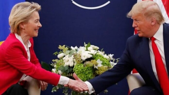 Περιγράφοντας τον Τραμπ ως σκληρό διαπραγματευτή, η πρόεδρος της Ευρωπαϊκής Επιτροπής Ούρσουλα φον ντερ Λάιεν δήλωσε ότι «ήταν το καλύτερο που μπορούσαμε να εξασφαλίσουμε».