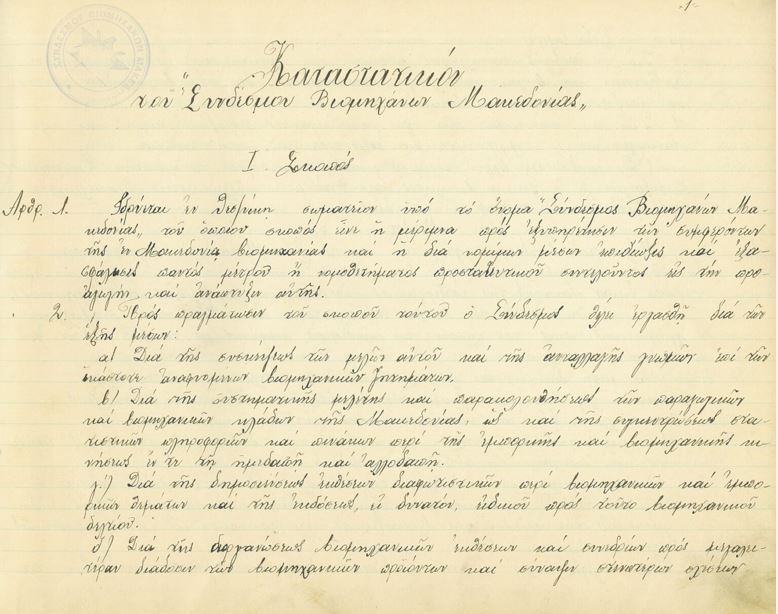 Είναι Ιανουάριος του 1914 και ο πρώτος παγκόσμιος πόλεμος δεν έχει ακόμη ξεσπάσει, όταν οκτώ άνθρωποι αποφασίζουν να προχωρήσουν στην ίδρυση συνδέσμου βιομηχανιών Μακεδονίας. Η πρώτη συνάντηση των οκτώ γίνεται στα γραφεία της υφαντουργικής «Έρια» στη Θεσσαλονίκη. Στην παλιά οδό Τσιμισκή. Ο δρόμος αυτός δεν υπάρχει πια.
