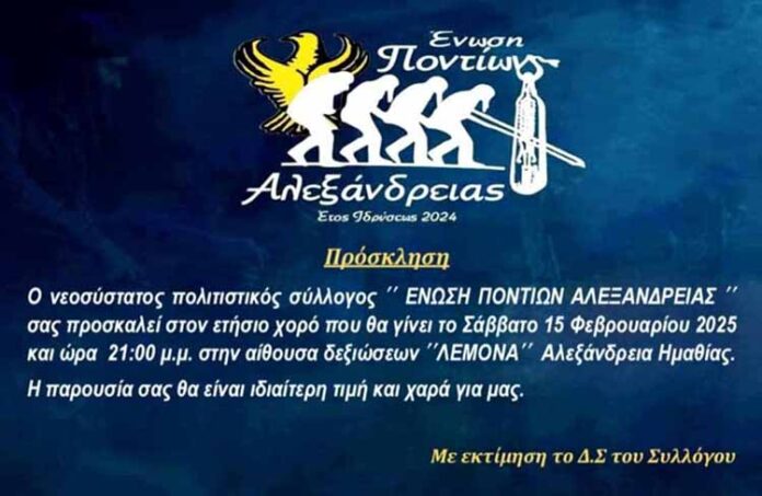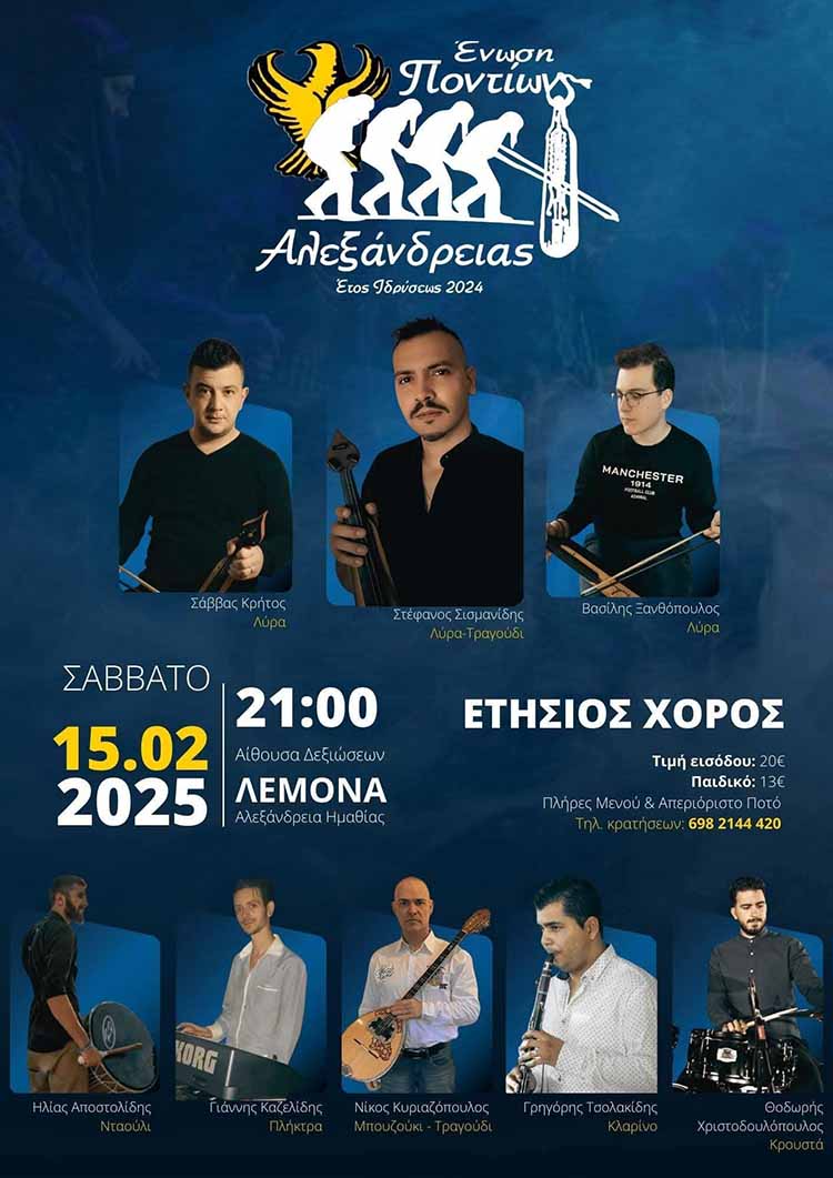 Εκδηλώσεις Ένωση Ποντίων Αλεξάνδρειας: Ετήσιος Χορός Από Έμβολος - 08/02/2025 Ένωση Ποντίων Αλεξάνδρειας: Ετήσιος Χορός