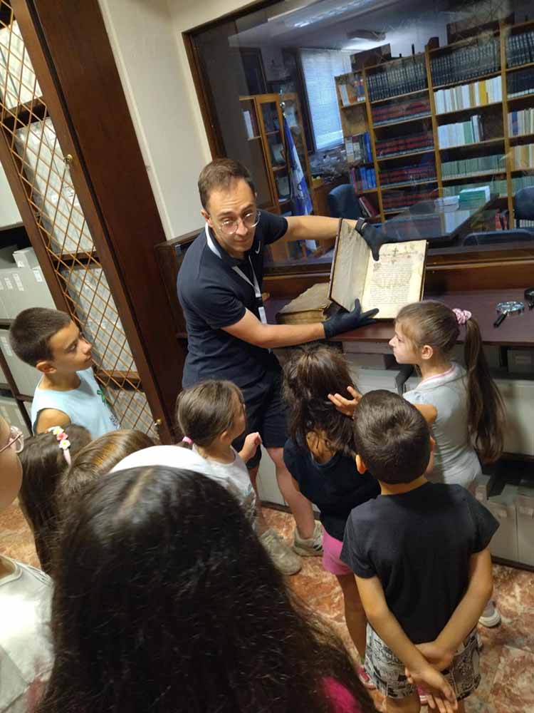 Ένα όμορφο πρωινό πέρασαν σήμερα οι μικροί μαθητές του ΚΔΑΠ Δήμου Νάουσας καθώς είχαν την ευκαιρία να επισκεφτούν την Εύξεινο Λέσχη Ποντίων Νάουσας όπου ο κος Χαράλαμπος Φανιάδης μίλησε στα παιδιά για τα σπάνια χειρόγραφα που φιλοξενούνται στο χώρο της και ανήκουν στην Εθνική Βιβλιοθήκη της Αργυρούπολης.