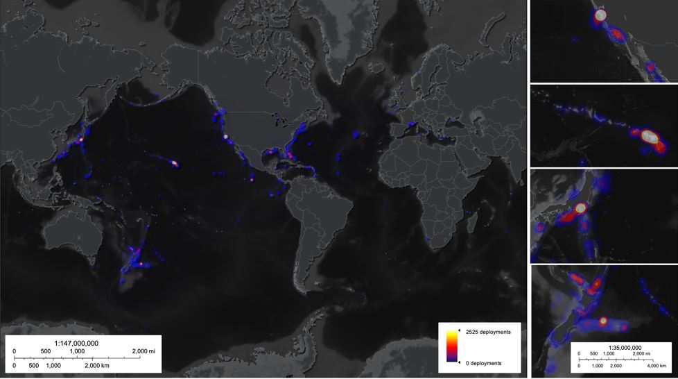 Η έρευνα εντοπίζει ότι υπάρχουν γεωγραφικές ανισότητες στα συλλεχθέντα δεδομένα, καθώς οι περισσότερες παρατηρήσεις έχουν γίνει εντός 200 ναυτικών μιλίων από τις Ηνωμένες Πολιτείες, την Ιαπωνία και τη Νέα Ζηλανδία. Οι ίδιες τρεις χώρες, καθώς και η Γαλλία και η Γερμανία, είχαν πραγματοποιήσει μαζί το 97,2% όλων των καταδύσεων. «Αυτό το μικρό και μεροληπτικό δείγμα είναι προβληματικό όταν επιχειρείται ο χαρακτηρισμός, η κατανόηση και η διαχείριση ενός παγκόσμιου ωκεανού», σημειώνουν οι συγγραφείς.