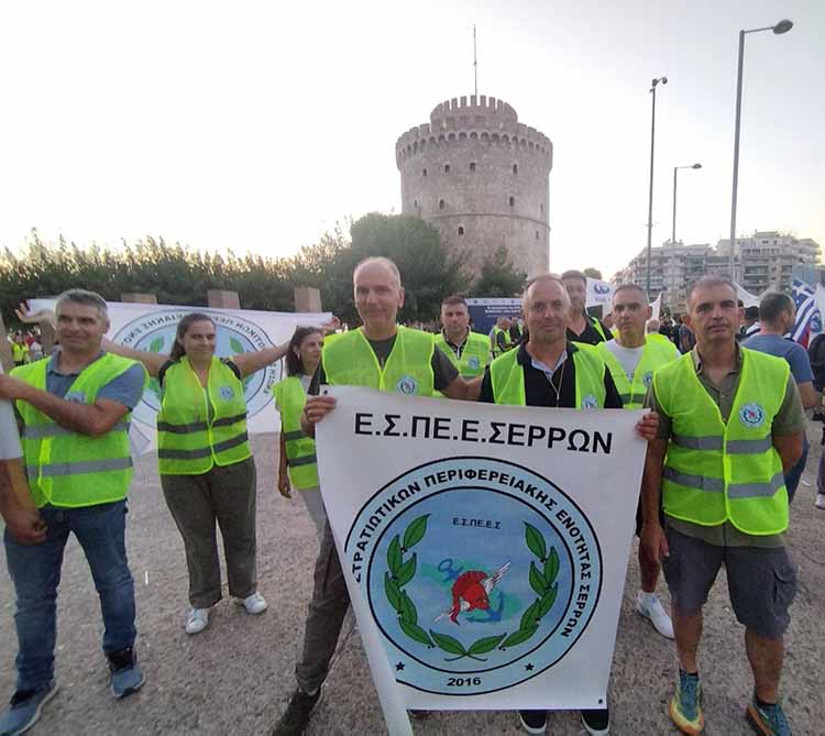 Η Ένωση Στρατιωτικών Περιφερειακής Ενότητας Σερρών (Ε.Σ.ΠΕ.Ε.Σ.) συμμετείχε στις εκδηλώσεις διαμαρτυρίας των εργαζομένων των Ένοπλων Δυνάμεων και των Σωμάτων Ασφαλείας ενόψει της Διεθνούς Εκθέσεως Θεσσαλονίκης (ΔΕΘ).