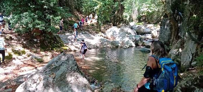 Γέμισε το Φαράγγι Κράστας, πεζοπορώντας υδάτινα, από 3 ετών μωρά έως 73 χρόνων παιδάκια, ανάμεσα σε νερά πλατανόφυλλα, καρπούζια Πρόδρομου Φ. Φανιάδη, πεντανόστιμα, βιολογικά και Γιαννακοχωρίτικα, παραγέμισε το Φαράγγι της Κράστας με 52 αγγέλους, ενώ ξεκινήσαμε με 20, η Βέροια και η Θεσσαλονίκη είχαν τις τιμητικές, με ανοιγμένα φτερά διαβήκαμε τους εννιά καταπληκτικούς σταθμούς, Δέση, Μέση, Στενό, Γαλάζια Νερά, Πράσινα Νερά, Φουρκέτα, Μαύρο Λιμάνι, Αερόπετρα, Καταρράκτης, κολυμπήσαμε αθόρυβοι, δροσεροί, υγιείς, χαρούμενοι του ποταμού Μέγα Ρέματος, ήμασταν θαρρείς πανέτοιμοι από ενέργεια για τα ουράνια, τόσο που ορκιστήκαμε 17 Αρχάγγελοι, να συναντήσουμε το ίδιο ποτάμι Μέγα ρέμα, στα 1000 μέτρα υψ, ενώ στο φαράγγι τραγουδούσαμε στα 150 – 260μ. υψόμετρο!