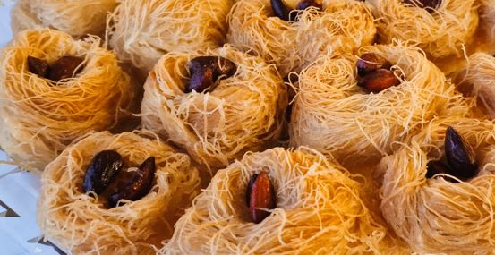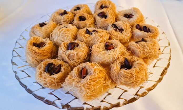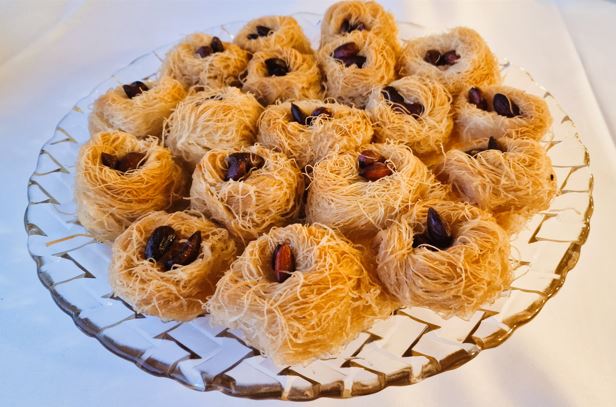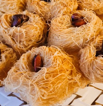 Μικρές φωλιές με φύλλο κανταΐφι παραγεμισμένο με ολόκληρα αμύγδαλα.
