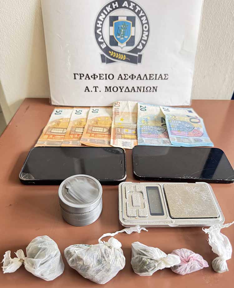 | Συλλήψεις για παράβαση της νομοθεσίας περί ναρκωτικών | Συνελήφθησαν χθες (1 Ιουνίου 2025) το μεσημέρι σε περιοχή της Χαλκιδικής, από αστυνομικούς του Αστυνομικού Τμήματος Μουδανιών, δύο αλλοδαποί άνδρες, καθώς σε έρευνα που πραγματοποιήθηκε σε οικία τους και στην κατοχή τους, βρέθηκαν συνολικά και κατασχέθηκαν: