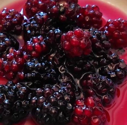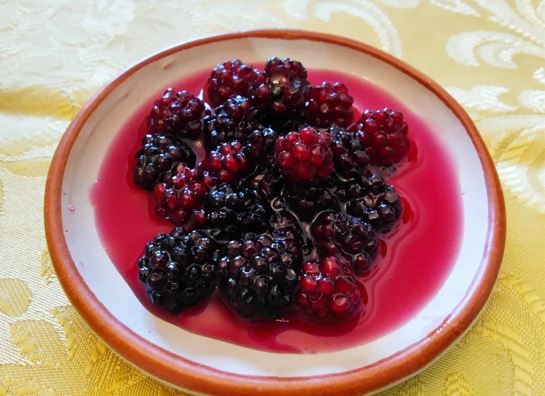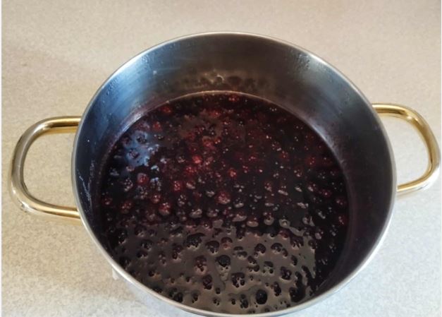 Την επόμενη ημέρα αφαιρούμε τα βατόμουρα και μένουν τα υγρά που τα βράζουμε μέχρι να γίνουν σαν σιρόπι πηχτό με κομπάκια.