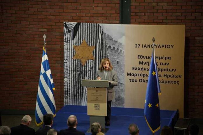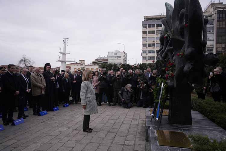 Η Περιφερειάρχης Κεντρικής Μακεδονίας στον χαιρετισμό που απηύθυνε μεταξύ άλλων σημείωσε: «Τιμούμε σήμερα τους Έλληνες Εβραίους Μάρτυρες και Ήρωες του Ολοκαυτώματος. Η Θεσσαλονίκη, κάθε τέτοια μέρα, θυμάται μια από τις πλέον ζοφερές περιόδους της Ιστορίας της, όχι μόνον επειδή έχει χρέος να το κάνει, αλλά επειδή χαράχτηκε ανεξίτηλα στο κοινωνικό και ιστορικό υποσυνείδητο. Γιατί η πόλη και όλοι εμείς μάθαμε να ζούμε με μια ανοιχτή πληγή και να μεταλαμπαδεύουμε τα διδάγματα εκείνης της εποχής στις επόμενες γενιές, με την επισήμανση ότι δεν πρέπει και δεν μπορούν να ξεχάσουν, ώστε να μην επιτρέψουν να επαναληφθεί μια τέτοια θηριωδία. Μπορεί η Ιστορία της ανθρωπότητας να είναι γεμάτη από πολέμους και εγκλήματα, όμως ποτέ ξανά δεν αντίκρισε τέτοιο απόλυτο κακό. Καμία άλλη εβραϊκή κοινότητα στην Ευρώπη δεν εξοντώθηκε τόσο γρήγορα όσο η εβραϊκή κοινότητα της Θεσσαλονίκης, της ‘Ιερουσαλήμ των Βαλκανίων’. Μια κοινότητα, από τις μεγαλύτερες και αρχαιότερες στην Ευρώπη και επίκεντρο του Σεφαραδίτικου Εβραϊσμού, που ήταν άρρηκτα συνδεδεμένη με την ιστορία και την πορεία της πόλης, που είχε διαδραματίσει καθοριστικό ρόλο στη διαμόρφωση της ταυτότητας της Θεσσαλονίκης και είχε δώσει στην πόλη τον χαρακτήρα της πολυπολιτισμικότητας».