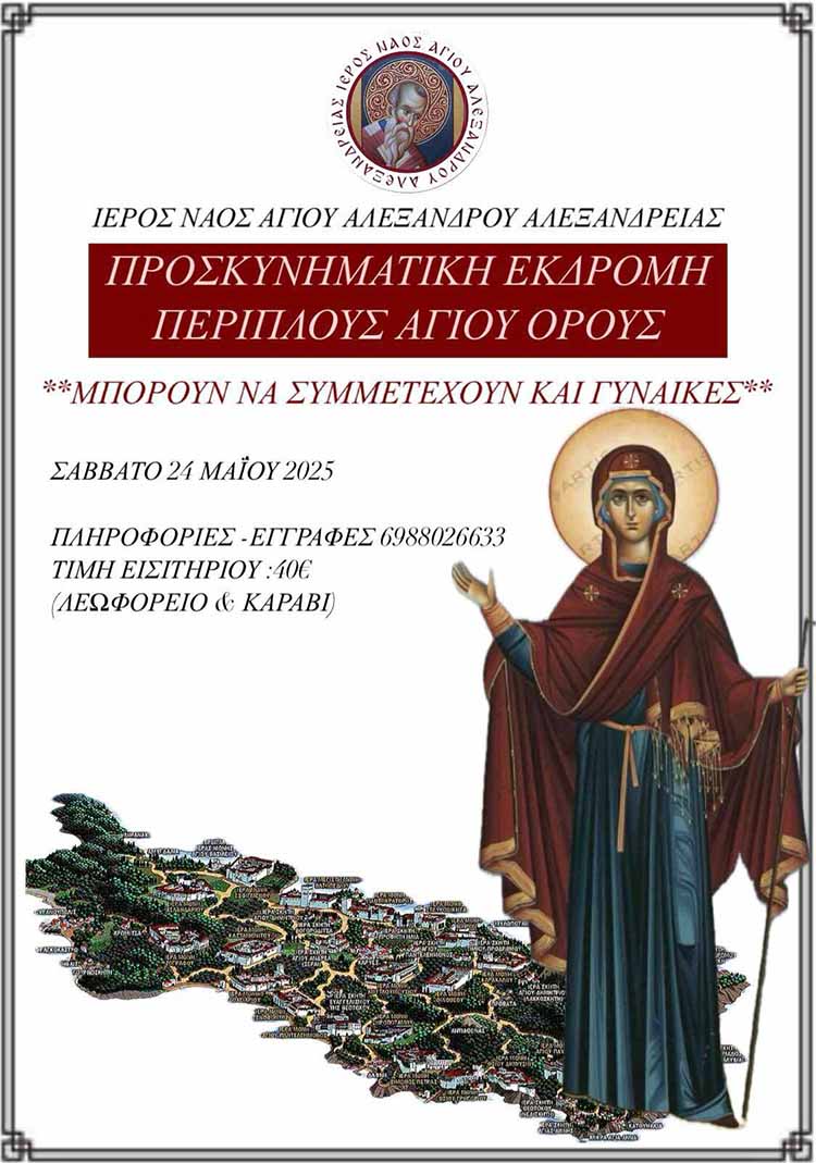 Εκδηλώσεις Ι.Ν. Αγίου Αλεξάνδρου Αλεξάνδρειας: Προσκυνηματική εκδρομή Από Έμβολος - 04/05/2025 Ι.Ν. Αγίου Αλεξάνδρου Αλεξάνδρειας: Προσκυνηματική εκδρομή