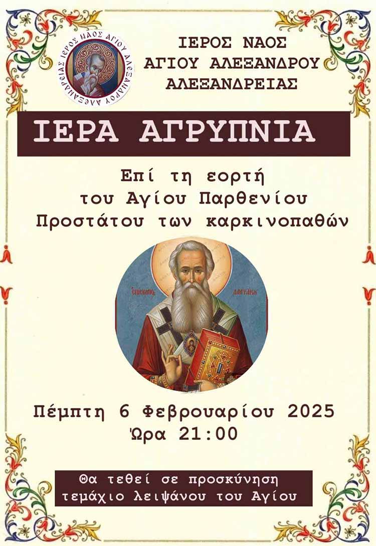 Εκκλησία Ι.Ν. Αγίου Αλεξάνδρου: Ιερά Αγρυπνία Από Έμβολος - 04/02/2025 Ι.Ν. Αγίου Αλεξάνδρου Αλεξάνδρειας: Ιερά Αγρυπνία