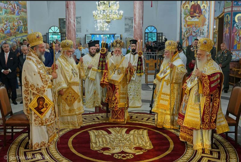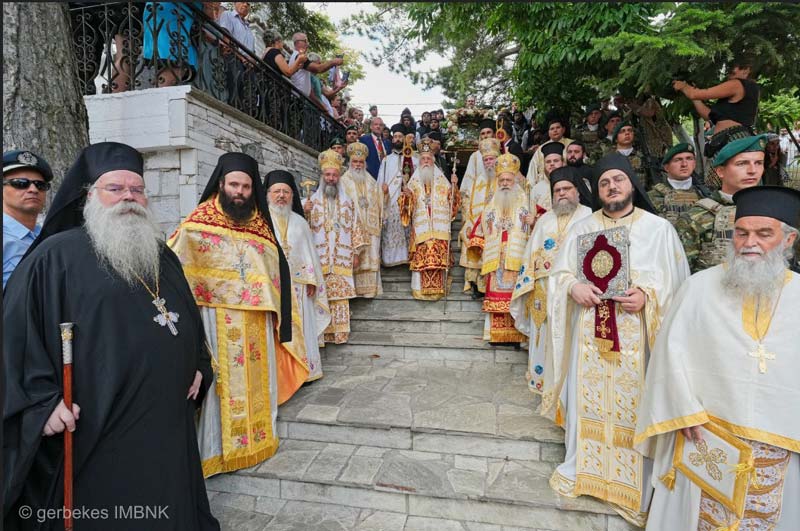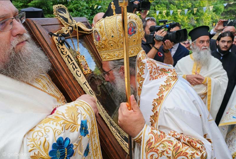 Ο σεβασμιότατος Μητροπολίτης Βεροίας, Ναούσης και Καμπανίας κκ. Παντελεήμων υποδέχθηκε τον σεβασμιώτατο κκ Θεοδώρητο, Μητροπολίτη Λαοδικείας και επίσκοπο του Οικουμενικού Πατριαρχείου, τον Σεβασμιώτατο Μητροπολίτη Νεαπόλεως και Σταυρουπόλεως κ. Βαρνάβα, τον σεβασμιώταο Μητροπολίτη Φιλίππων, Νεαπόλεως και Θάσου κ. Στέφανο και τον Σεβασμιώτατο Μητροπολίτη Ρεθύμνης και Αυλοποτάμου κ. Πρόδρομο. Ο Σεβασμιώτατος Μητροπολίτης Βεροίας, Ναούσης και Καμπανίας κ. Παντελεήμων κήρυξε και τον πανηγυρικό θείο λόγο. Κατά την επιστροφή της ιεράς Λιτανείας τον Δεκαππενταύγουστο στον ιερό Ναό ο Σεβασμιώτατος Μητροπολίτης Ρεθύμνης κ. Πρόδρομος, εκπληρώνοντας προσωπικό του τάμα προς την Παναγία Σουμελά εναπόθεσε στην ιερά Εικόνα ένα αρχιερατικό εγκόλπιο που φέρει παράσταση της Κοιμήσεως της Θεοτόκου και απηύθυνε πρόσκληση για επίσκεψη της Σεπτής Εικόνας στην Μητρόπολη Ρεθύμνης και Αυλοποτάμου για την επέτειο των 160 ετών από το ολοκαύτωμα του Αρκαδίου.