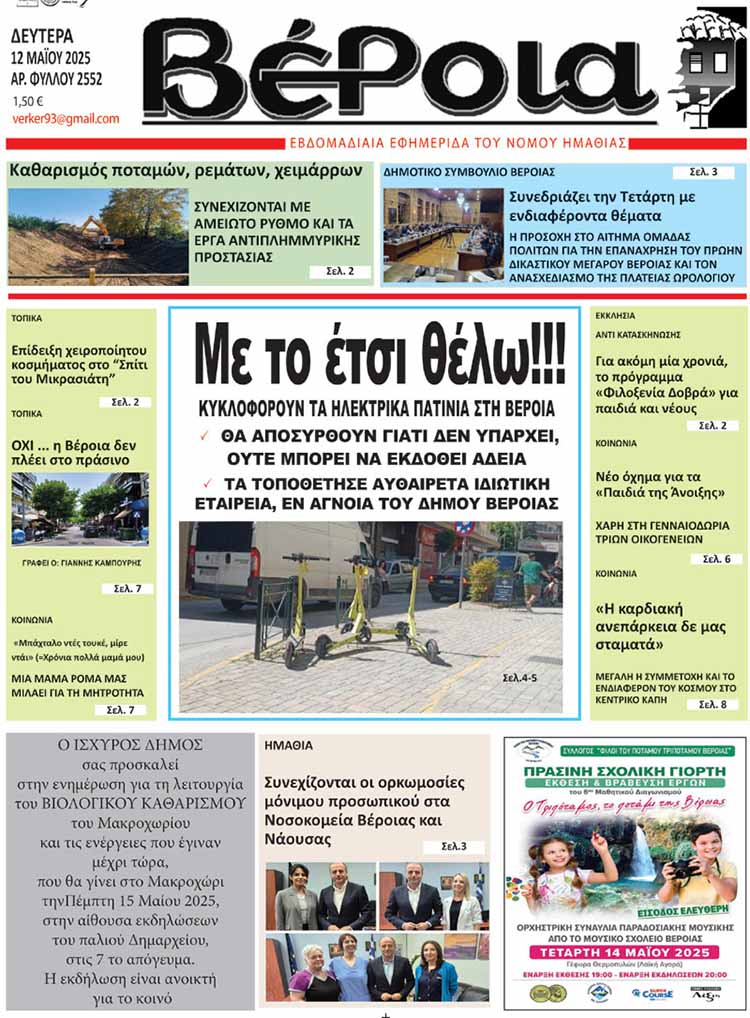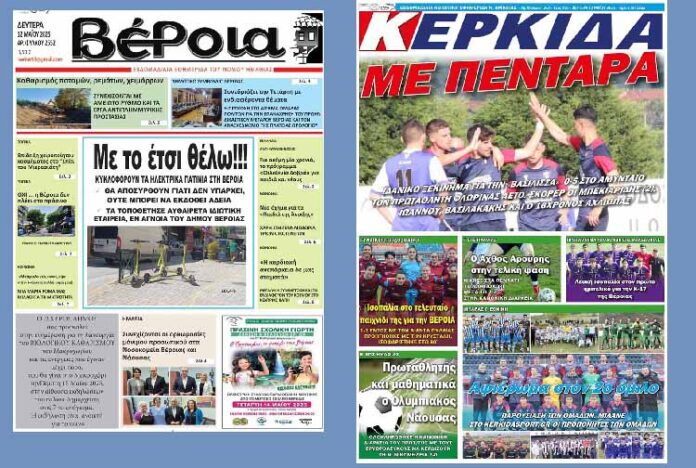 Εφημερίδες Ημαθία: Τα πρωτοσέλιδα των εφημερίδων “Βέροια” και “ΚΕΡΚΙΔΑ” Από Έμβολος - 12/05/2025 Τα πρωτοσέλιδα των εφημερίδων «Βέροια» και ΚΕΡΚΙΔΑ Το πρωτοσέλιδο της εφημερίδας «Βέροια» Το πρωτοσέλιδο της εφημερίδας «Κερκίδα»