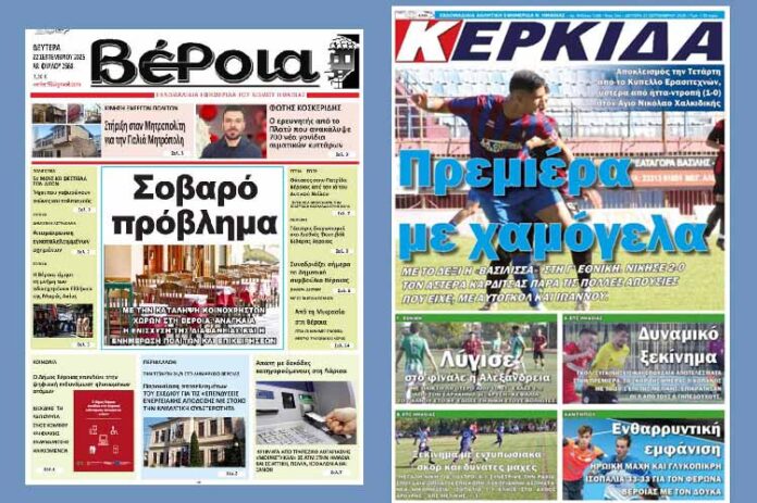 Ημαθία: Τα πρωτοσέλιδα των εφημερίδων “Βέροια” και “ΚΕΡΚΙΔΑ”