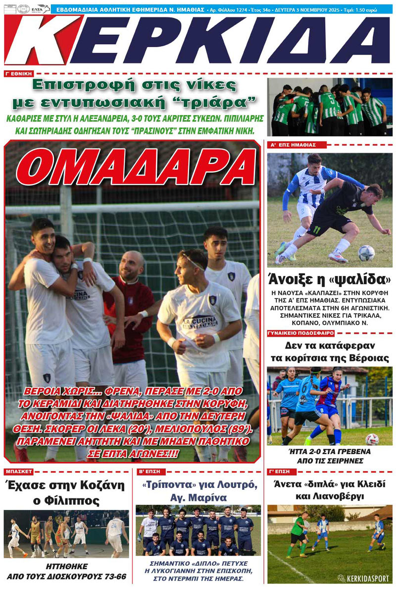 VERIA3Το πρωτοσέλιδο της εφημερίδας “ΚΕΡΚΙΔΑ”