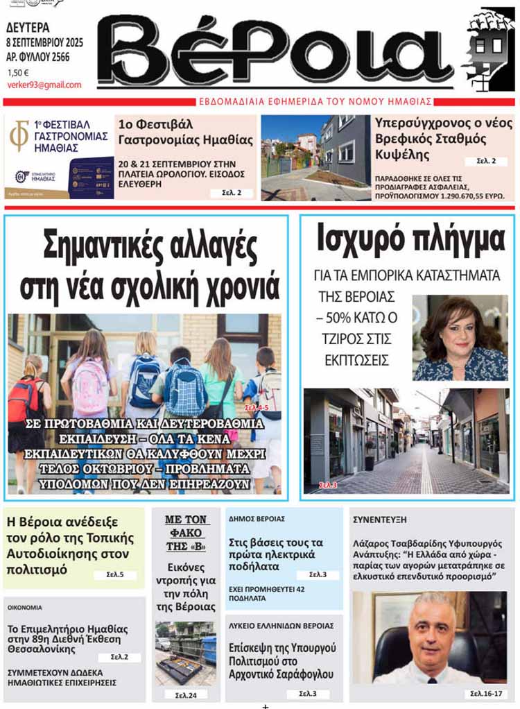 Εφημερίδες Ημαθία: Το πρωτοσέλιδο της εφημερίδας “Βέροια” Από Έμβολος - 08/09/2025 Το πρωτοσέλιδο της εφημερίδας “Βέροια”