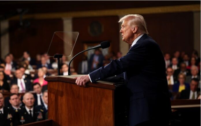Ακόμα δεν βρίσκεται «παρά μόλις στην αρχή»: ο Ντόναλντ Τραμπ εκφώνησε το βράδυ χθες Τρίτη ενώπιον της ολομέλειας του βαθιά διχασμένου Κογκρέσου την πιο μακρά ομιλία στην ιστορία της αμερικανικής εθνικής αντιπροσωπείας, ενώπιον εκστασιασμένων Ρεπουμπλικάνων κι αποσβολωμένων ή εξοργισμένων Δημοκρατικών, μερικές εβδομάδες αφού επέστρεψε στον Λευκό Οίκο κι άρχισε την αναμόρφωση, αν όχι ή την κατεδάφιση, αμερικανικών θεσμών, υπηρεσιών, της αμερικανικής εξωτερικής πολιτικής και για πολλούς της παγκόσμιας τάξης.