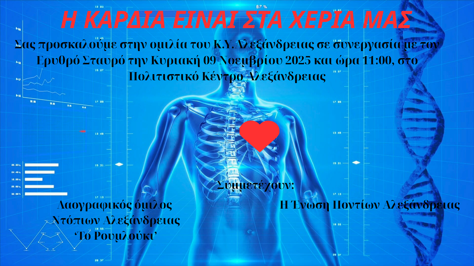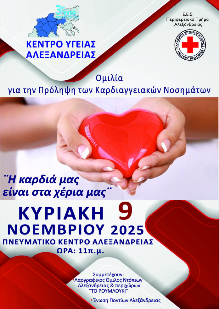Αλεξάνδρεια Κ.Υ. Αλεξάνδρειας: “Η καρδιά μας είναι στα χέρια μας” Από Έμβολος - 04/11/2025 Πρόσκληση “Η καρδιά μας είναι στα χέρια μας”