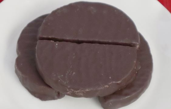 Βουτάμε τις φέτες στη σοκολάτα με μια λεπτή λαβίδα και τις κουνάμε για να σχηματιστούν κύματα στην επιφάνεια.