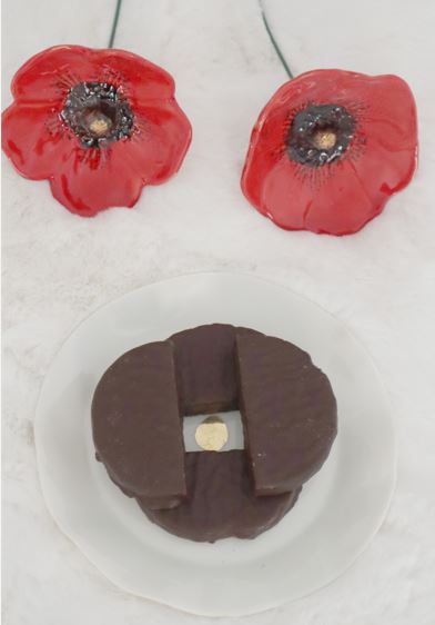 Τις απλώνουμε σε μεμβράνη και αφήνουμε να κρυώσει η σοκολάτα.