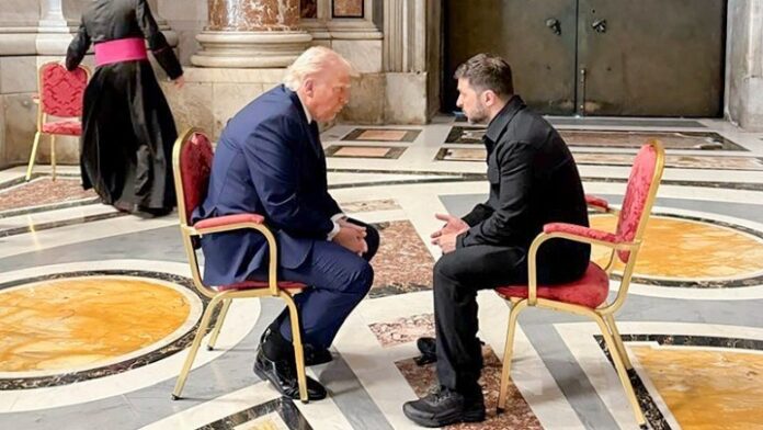 Ο πρόεδρος των ΗΠΑ Ντόναλντ Τραμπ και ο Ουκρανός ομόλογός του Βολοντίμιρ Ζελένσκι είχαν χθες, Σάββατο, στο Βατικανό, πριν από την κηδεία του πάπα Φραγκίσκου, κατ’ιδίαν συνάντηση σε μια προσπάθεια να αναζωογονήσουν τις παραπαίουσες προσπάθειες για τον τερματισμό του πολέμου της Ρωσίας με την Ουκρανία.