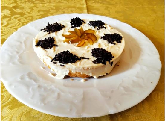 Διακοσμούμε με γλυκό συκαλάκι κομμένο σε λεπτές φέτες και τρούφα κουβερτούρας μαύρης σοκολάτας.