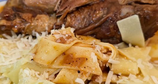 Η Βάσω τον έφτιαξε με παπαρδέλες, αλλά προσωπικά μου αρέσει περισσότερο με χοντρά μακαρόνια.