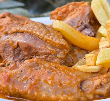 - Αποσύρουμε από τη φωτιά και αφήνουμε λίγο να σταθεί το φαγητό, πριν σερβίρουμε με τηγανητές πατάτες.