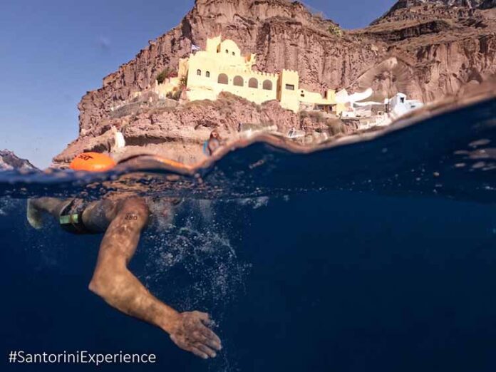 Μια από τις πιο εντυπωσιακές δράσεις του προγράμματος θα είναι η κολυμβητική διαδρομή open water που θα διεξαχθεί το πρωί της Παρασκευής 10 Οκτωβρίου. Οι συμμετέχοντες θα διανύσουν μια ξεχωριστή διαδρομή 2,4 χλμ. (1,5 μίλι), ξεκινώντας από το Ηφαίστειο και τερματίζοντας στο παλιό λιμάνι των Φηρών, έχοντας ως φόντο την επιβλητική θέα του νησιού. Πρόκειται για μια διαδρομή που παρέχεται στους συμμετέχοντες μόνο μια φορά τον χρόνο με άδεια από την Περιφερειακή Υπηρεσία Τουρισμού Κυκλάδων και με τη σύμφωνη γνώμη του Λιμεναρχείου Θήρας. Τα νερά με βάθος που φτάνουν μέχρι και τα 400 μέτρα και θερμοκρασία γύρω στους 22-23°C, προσφέρουν τις ιδανικές συνθήκες για έναν απολαυστικό αγώνα. Η διοργάνωση δίνει ιδιαίτερη έμφαση στην ασφάλεια των αθλητών, με την παρουσία εξειδικευμένων ναυαγοσωστών και ναυαγοσωστικών σκαφών καθ’  όλη τη διάρκεια της διαδρομής.  Στην ασφάλεια του αγώνα θα συμβάλλουν επίσης οι επαγγελματίες ναυαγοσώστες και τα σκάφη της Lifeguard Patrol, που θα φροντίσουν και για τον απαραίτητο φαρμακευτικό και ιατρικό εξοπλισμό. Την κολύμβηση θα υποστηρίξουν ακόμα με σκάφη και προσωπικό η Ένωση Λεμβούχων Σαντορίνης, η Caldera Yachting και ο Ναυτικός Όμιλος Σαντορίνης, ενώ η διοργάνωση θα εξασφαλίσει για όλους τους αθλητές σωσίβιο ασφαλείας, παρέχοντας επιπλέον προστασία σε κάθε συμμετέχοντα. Η χρήση ατομικού πλωτήρα είναι υποχρεωτική για όλους. Τεχνικός Διευθυντής του αγώνα είναι ο κορυφαίος προπονητής Νίκος Γέμελος, με πολυετή εμπειρία και σημαντικές διακρίσεις σε Ολυμπιακούς αγώνες και παγκόσμια πρωταθλήματα.