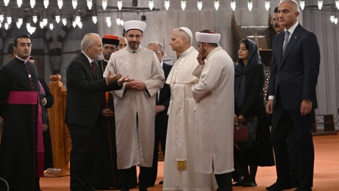 Το τέμενος του Σουλταναχμέτ επισκέφθηκε σήμερα το πρωί ο Πάπας Λέων ΙΔ’, προτού μεταβεί στον ναό Μορ Εφραίμ της Συριακής Ορθόδοξης Εκκλησίας, στο πλαίσιο των επαφών του στην Κωνσταντινούπολη.