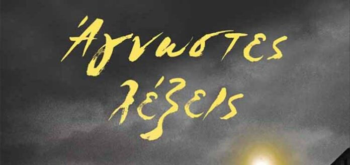 Βασισμένο στην υπόθεση Πολκ, το μυθιστόρημα «Άγνωστες λέξεις» δεν έχει την πρόθεση να θέσει ξανά τα ίδια ερωτήματα και – πολύ περισσότερο – να βρει τις απαντήσεις που κανείς μέχρι σήμερα δεν αποτόλμησε να δώσει. Εξετάζει ένα ενδεχόμενο∙ μια σταγόνα στον ωκεανό των πιθανοτήτων.