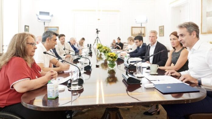 Στη συνάντηση έλαβε επίσης μέρος ο υπουργός Επικρατείας Άκης Σκέρτσος.