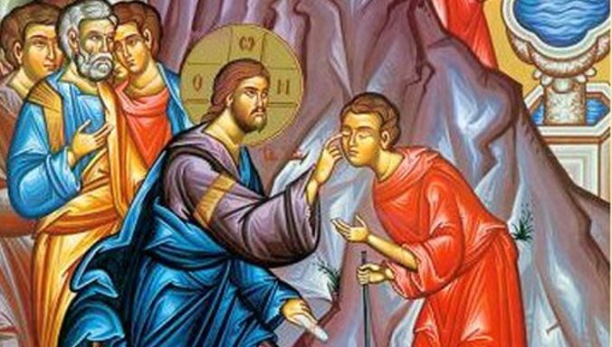 «Ὕπαγε νίψαι εἰς τὴν κολυμβήθραν τοῦ Σιλωάμ» (Ἰωάν. θ´ 7). Η εντολή δίδεται, και ο τυφλός υπακούει. Δεν ερωτά, δεν αμφιβάλλει, δεν ζητά εγγυήσεις. Ίσως η μακροχρόνια απόγνωση είχε διαβρώσει κάθε ίχνος αντίστασης, αφήνοντας μόνο την γυμνή ελπίδα, την ελπίδα του απεγνωσμένου. Και στο ύδωρ της κολυμβήθρας, σύμβολο του μελλοντικού βαπτίσματος, του θανάτου του παλαιού ανθρώπου και της αναγέννησης, ο πηλός ξεπλένεται, και το φως εισρέει, όχι σταδιακά, αλλά σαν καταρράκτης, πνίγοντας τις παλαιές σκιές στην απροσδόκητη λαμπρότητά του. Ήλθε βλέπων. Δύο λέξεις, απλές, αλλά που περικλείουν το θαύμα, την ανατροπή της φύσης, την εισβολή του υπερβατικού στην πεζή καθημερινότητα.