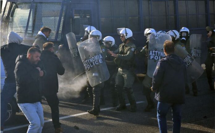 Στο σημείο σημειώθηκαν εντάσεις με τις αστυνομικές δυνάμεις να κάνουν χρήση χημικών.