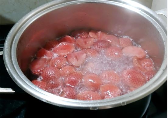 Εδώ έδωσα μια βράση και τις στραγγισμένες φράουλες για περισσότερη γεύση.