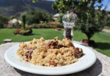Έπειτα τοποθετούμε και ψήνουμε στη γάστρα σε χαμηλή θερμοκρασί. Θέλει περίπου 2 ώρες να δέσει.
