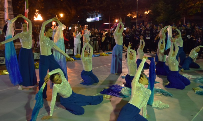 Στη συνέχεια αποδόθηκαν ο Ολυμπιακός Ύμνος και οι εθνικοί ύμνοι της Ιταλίας και της Ελλάδας, από τη Φιλαρμονική Εταιρεία Ναούσης, και ακολούθησε η έπαρση των σημαιών των Ολυμπιακών Αγώνων, της Ιταλίας και της Ελλάδας.