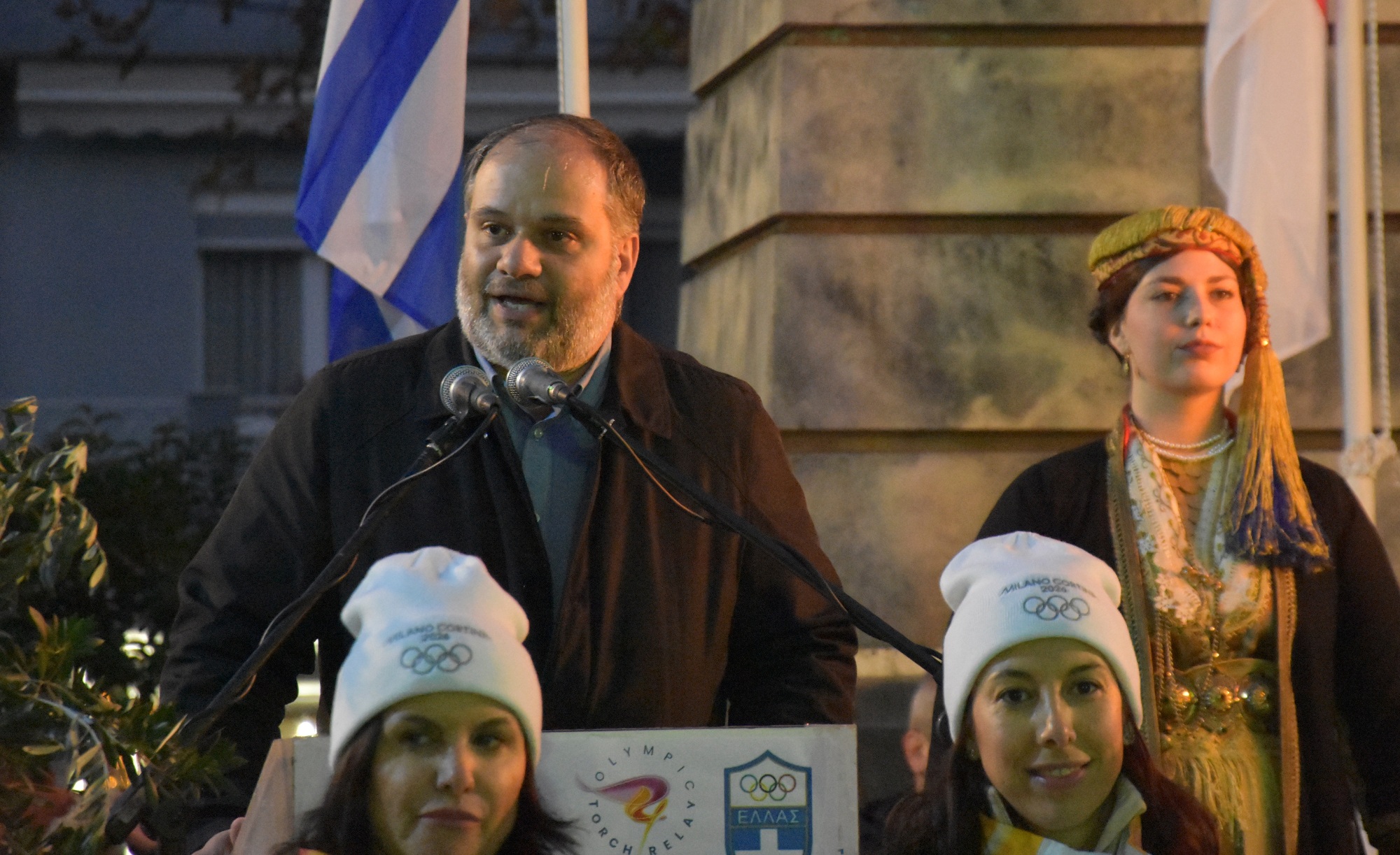 Θέλω να ευχαριστήσω θερμά την Ελληνική Ολυμπιακή Επιτροπή, την Οργανωτική Επιτροπή των Αγώνων Milano–Cortina 2026, όλους τους θεσμικούς φορείς και φυσικά τους δημότες μας, που με τη συμμετοχή και τον ενθουσιασμό τους προσέδωσαν στη σημερινή τελετή μοναδικότητα και λαμπρότητα.