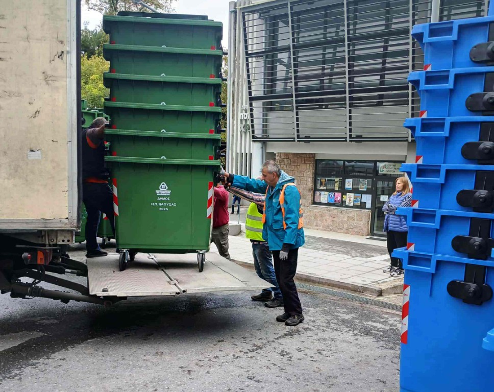 «Στο πλαίσιο της συνεχούς μέριμνας για την καθαριότητα, την προστασία του περιβάλλοντος και την αναβάθμιση της ποιότητας ζωής των πολιτών, προχωρήσαμε σήμερα στην παραλαβή νέων πράσινων κάδων απορριμμάτων και μπλε κάδων ανακύκλωσης.