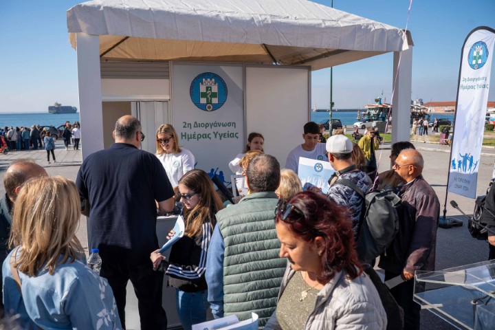 Κοσμοσυρροή στη «2η Διοργάνωση Ημέρας Υγείας» του Ιατρικού Συλλόγου Θεσσαλονίκης, στην Πλατεία Αριστοτέλους. Ο χώρος κατακλύστηκε από μικρούς και μεγάλους, όπου δεκάδες μέλη του ΙΣΘ, επιστημονικοί εκπρόσωποι από 29 επιστημονικές ιατρικές εταιρείες καθώς και αρκετοί άλλοι από εθνικούς και εθελοντικούς οργανισμούς τους ενημέρωσαν για τα πλεονεκτήματα της πρόληψης και της έγκαιρης διάγνωσης.
