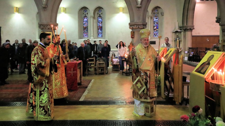 Τον Σεβασμιώτατο καλωσόρισαν θερμά ο υπεύθυνος Ιερέας, Αιδεσιμολογιώτατος Οικονόμος κ. Ριχάρδος Penwell, μαζί με την Πρεσβυτέρα Ταμάρα, το ενοριακό συμβούλιο και την ευρύτερη ενοριακή κοινότητα. Στην τέλεση της Θείας Λειτουργίας συμμετείχαν ο π. Ριχάρδος, ο Ιερολογιώτατος Αρχιδιάκονος Δρ. Γεώργιος Τσουρούς και ο Διάκονος Catalin Constandis.