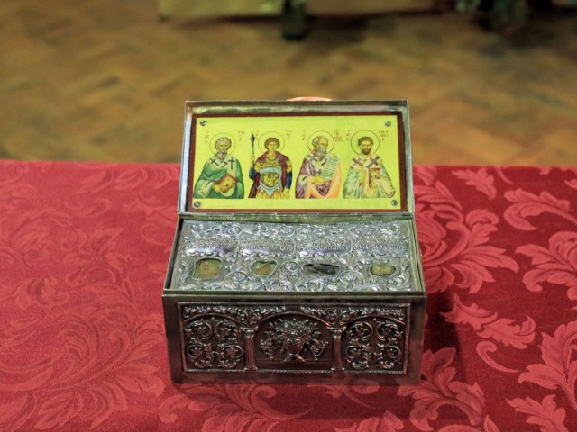 Ως ιδιαίτερη ευλογία για τους πιστούς, ο Σεβασμιώτατος έφερε μαζί του για προσκύνηση ιερά λείψανα τεσσάρων αγίων: του Αγίου Γεωργίου του Τροπαιοφόρου, του Αγίου Ιωάννου του Ελεήμονος, του Αγίου Βλασίου και του Αγίου Ελευθερίου. Η παρουσία τους ανάμεσα στο εκκλησίασμα αποτέλεσε μια αισθητή υπενθύμιση της κοινωνίας των Αγίων και της μεσιτείας τους στη ζωή της Εκκλησίας σήμερα.