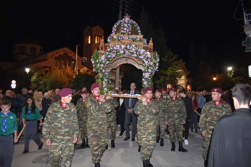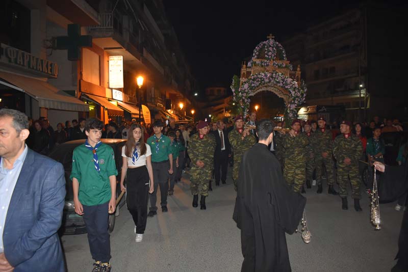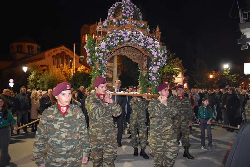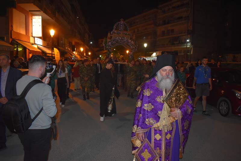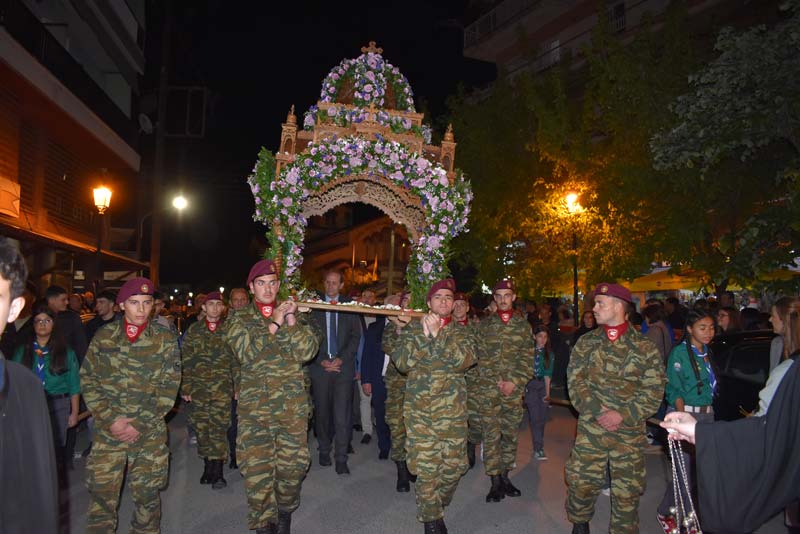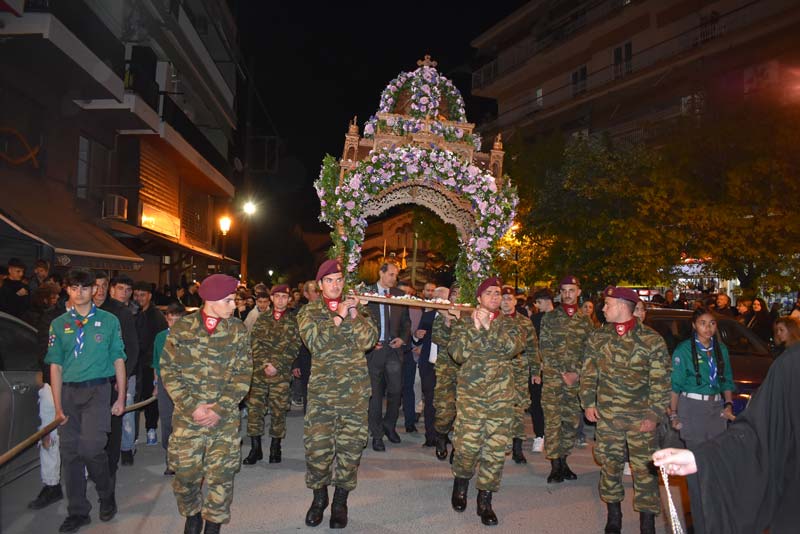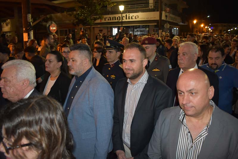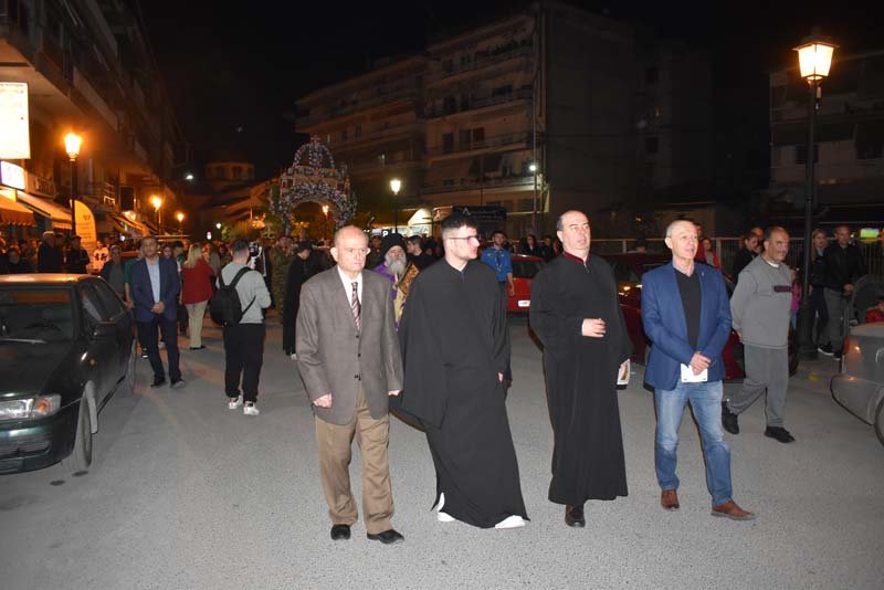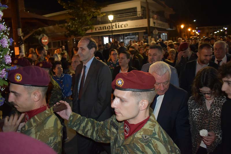 Εκπρόσωποι της πολιτικής ηγεσίας, τοπικής αυτοδιοίκησης, καθώς και αντιπροσωπείες Στρατού, Αστυνομίας και Πυροσβεστικής έδωσαν το παρόν, ενώ η μπάντα του δήμου προπορευόμενη παιάνιζε πένθιμα εμβατήρια της Μ. Παρασκευής, κατά την περιφορά του Επιταφίου στους δρόμους της πόλης.