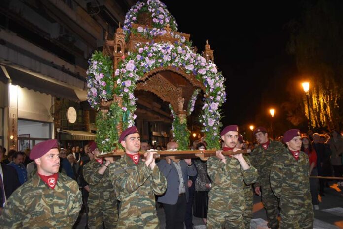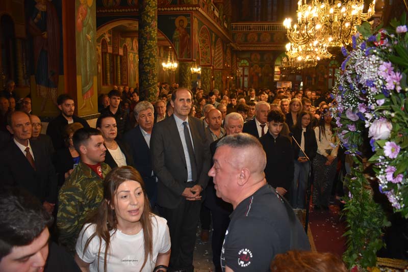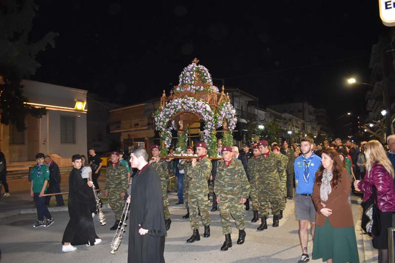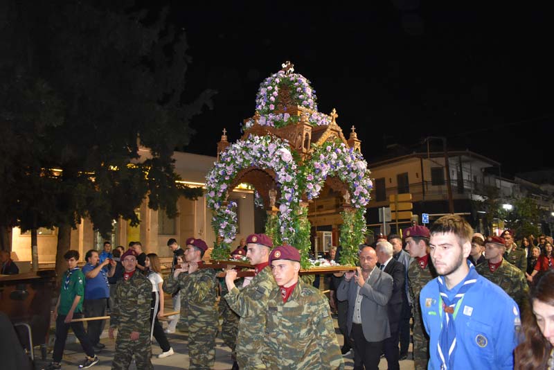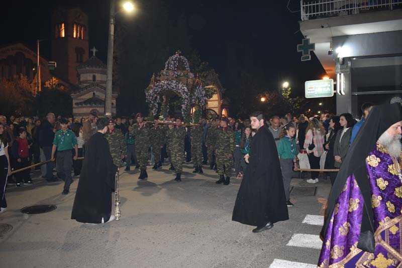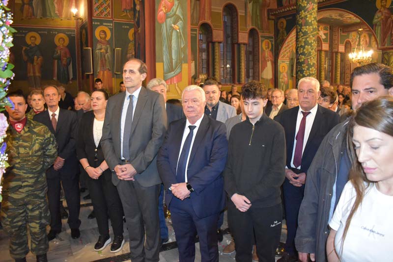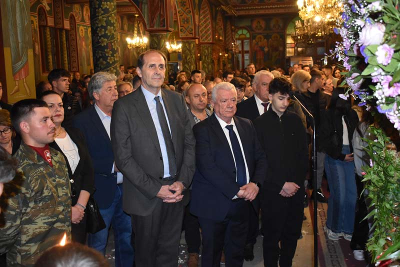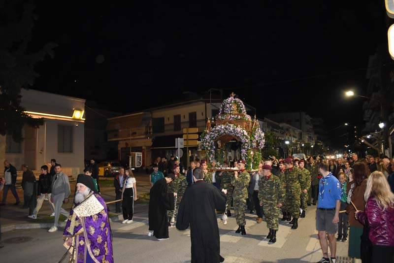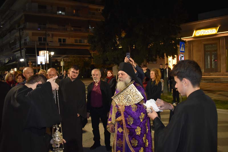 Εκπρόσωποι της πολιτικής ηγεσίας, τοπικής αυτοδιοίκησης, καθώς και αντιπροσωπείες Στρατού, Αστυνομίας και Πυροσβεστικής έδωσαν το παρόν, ενώ η μπάντα του δήμου προπορευόμενη παιάνιζε πένθιμα εμβατήρια της Μ. Παρασκευής, κατά την περιφορά του Επιταφίου στους δρόμους της πόλης.