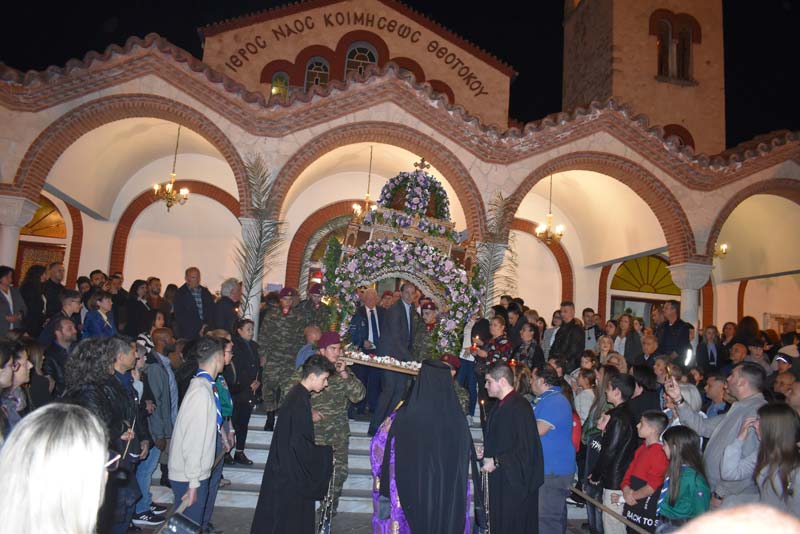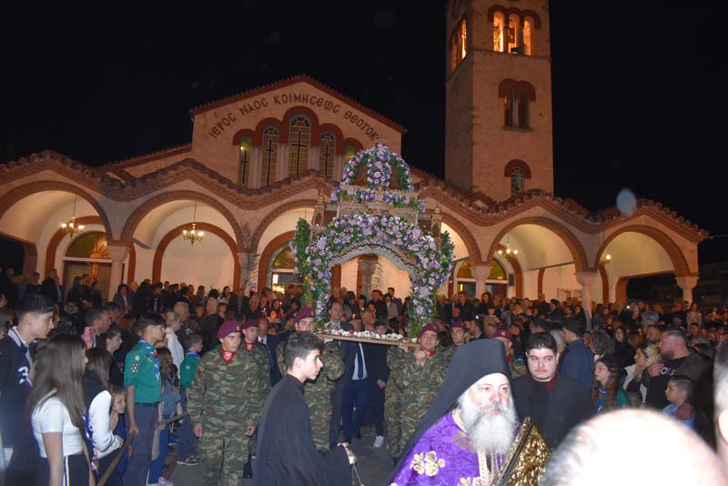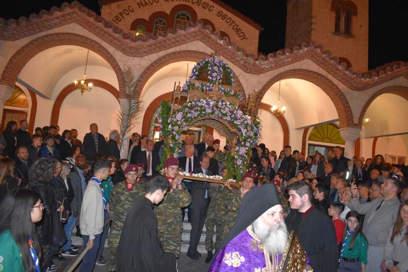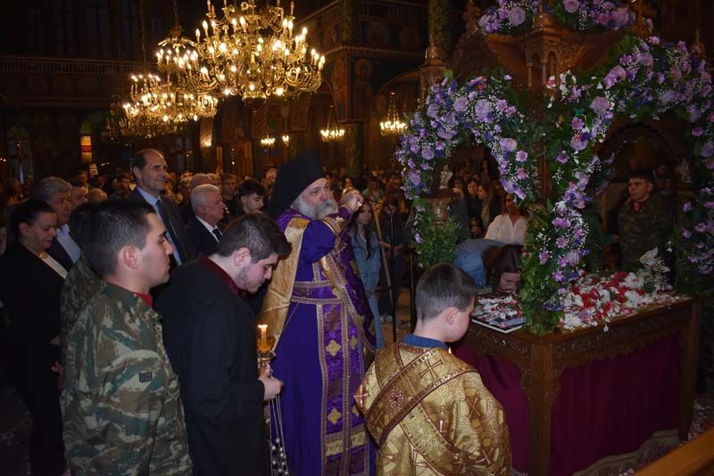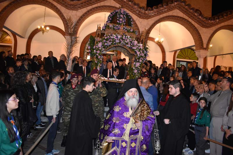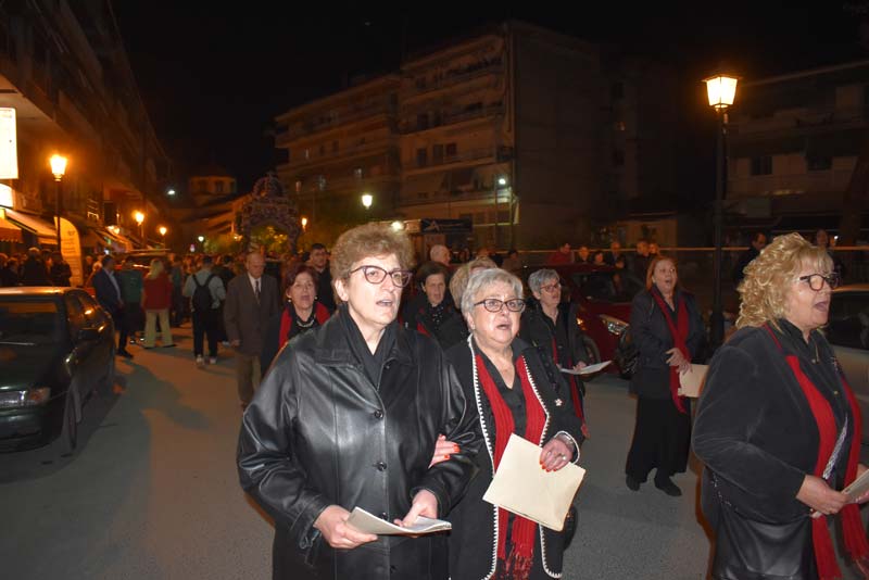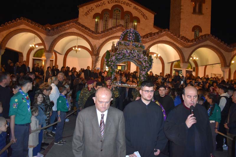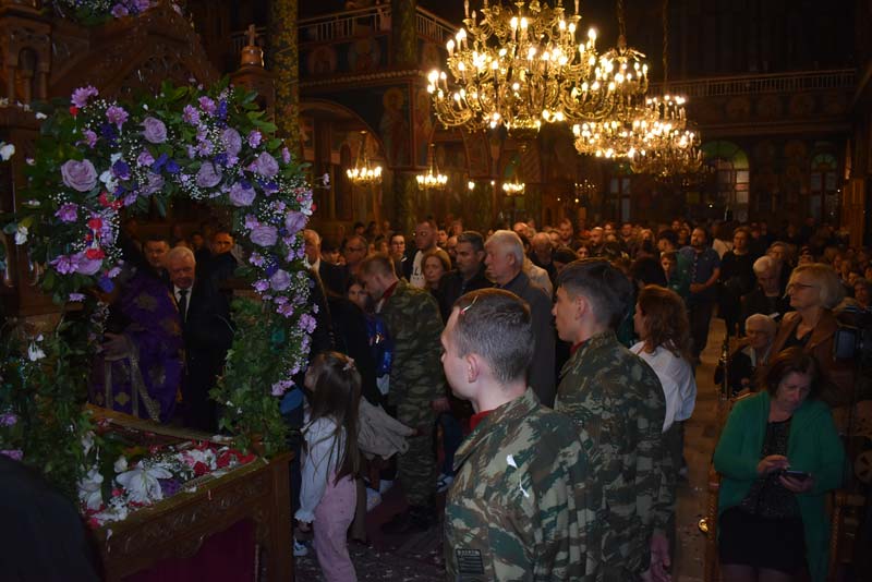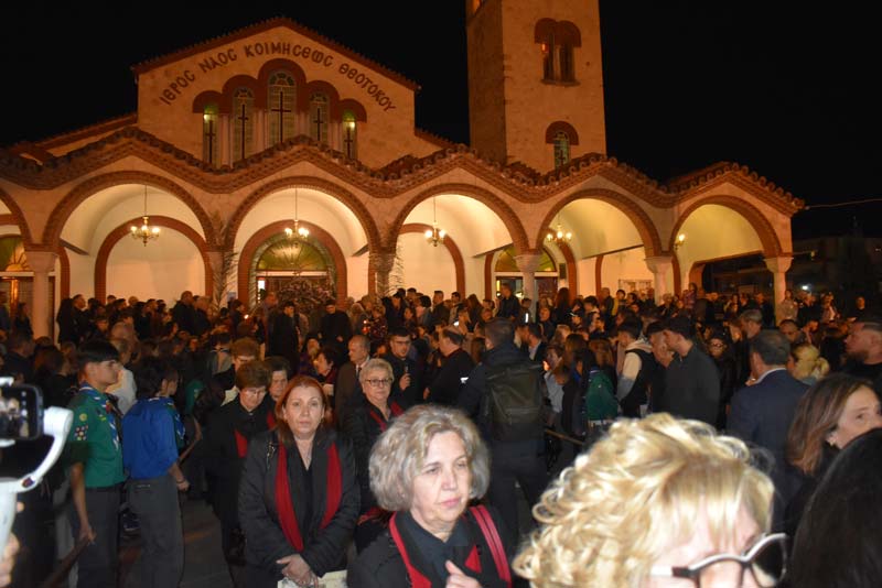 Με το πλήθος του κόσμου να υπερβαίνει σε αριθμό το αντίστοιχο οποιασδήποτε άλλης χρονιάς, ο εντυπωσιακός Επιτάφιος του Ιερού Ναού Κοιμήσεως της Θεοτόκου εξυμνήθηκε με τους ψαλμούς της γυναικείας χορωδίας, των ιεροψαλτών και ιερέων της εκκλησίας, αλλά και όλων των παρευρισκόμενων πιστών!
