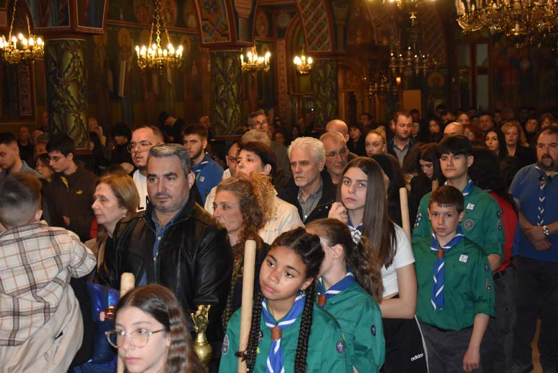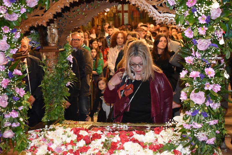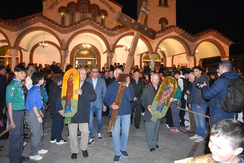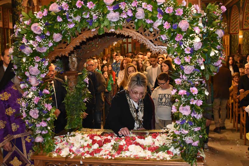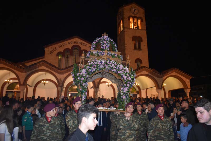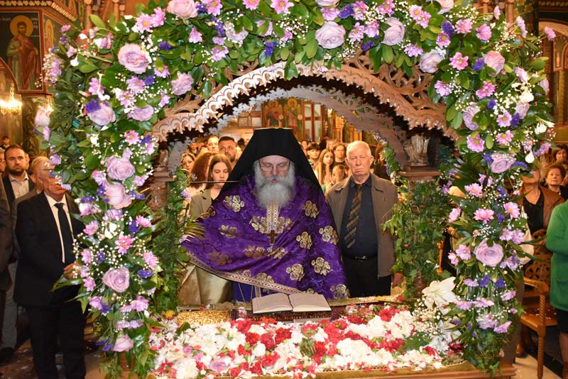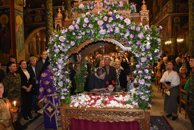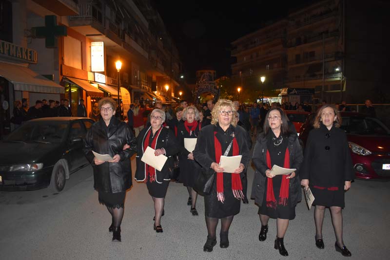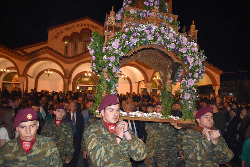 Με το πλήθος του κόσμου να υπερβαίνει σε αριθμό το αντίστοιχο οποιασδήποτε άλλης χρονιάς, ο εντυπωσιακός Επιτάφιος του Ιερού Ναού Κοιμήσεως της Θεοτόκου εξυμνήθηκε με τους ψαλμούς της γυναικείας χορωδίας, των ιεροψαλτών και ιερέων της εκκλησίας, αλλά και όλων των παρευρισκόμενων πιστών!