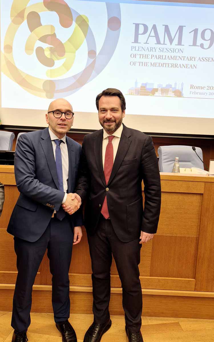 Στο πλαίσιο των εργασιών στη Ρώμη, ο Τάσος Μπαρτζώκας είχε συνάντηση με τον νέο Πρόεδρο της Κοινοβουλευτικής Συνέλευσης των Κρατών της Μεσογείου και Βουλευτή του Ιταλικού Κοινοβουλίου, Giulio Centemero.