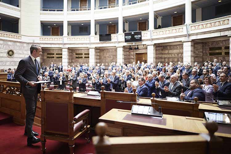Και να ξαναπώ ότι οι κεντρικές μας επιλογές είναι τελικά υπόθεση όλων και το ίδιο αφορά και την ευθύνη της εφαρμογής τους. Σας μιλώ τολμηρά και ανοιχτά, διότι απευθύνομαι στους βουλευτές της Νέας Δημοκρατίας, που τελικά είναι η γέφυρα με τους πολίτες και γνωρίζουν, συνεπώς, ότι στα μάτια της κοινωνίας πολιτική δεν είναι μόνο οι θέσεις, είναι και οι καθημερινές συμπεριφορές, είναι και η υποχρέωση τα λόγια μας να είναι πάντα καλά ζυγισμένα, σε ένα τοπίο όπου, θα το επαναλάβω, κυριαρχεί η υπερβολή και η διαστρέβλωση.