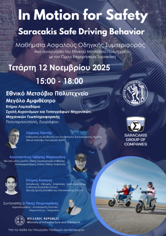 Ο Όμιλος Επιχειρήσεων Σαρακάκη, στο πλαίσιο της πρωτοβουλίας Εταιρικής Υπευθυνότητας: “In Motion for Safety”, ανακοινώνει τη συνεργασία του με το κορυφαίο δημόσιο εκπαιδευτικό ίδρυμα Ανώτατης Εκπαίδευσης της χώρας, το Εθνικό Μετσόβιο Πολυτεχνείο.