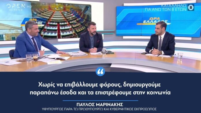 Συνέντευξη του Υφυπουργού παρά τω Πρωθυπουργώ και Κυβερνητικού Εκπροσώπου Παύλου Μαρινάκη στην εκπομπή του ΟΡΕΝ «Ώρα Ελλάδος» και τους δημοσιογράφους Μάνο Νιφλή και Γιάννη Κολοκυθά