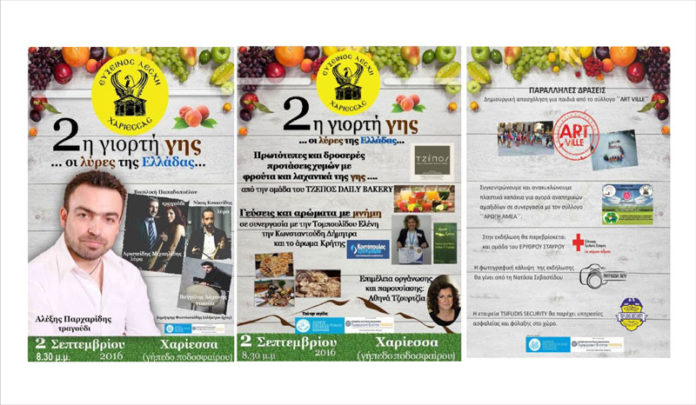 Πληθώρα  πολιτιστικών δράσεων  στην «2η Γιορτή Γης» που θα πραγματοποιηθεί την Παρασκευή 2 Σεπτεμβρίου 2016 στις 8:30 το βράδυ,στο γήπεδο ποδοσφαίρου της Χαρίεσσας.